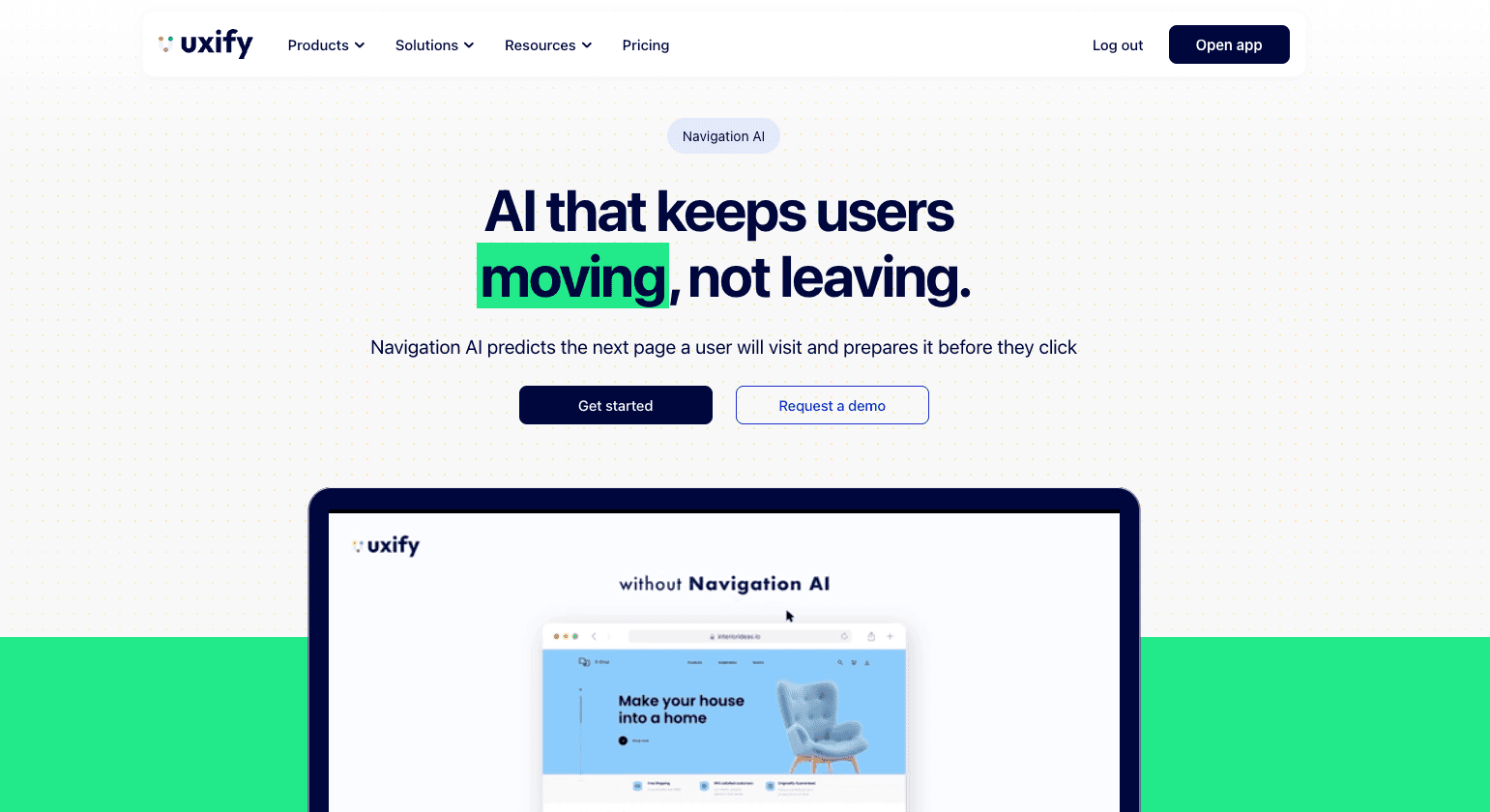 Showcased twice at Google I/O 2024, Uxify’s Navigation AI enhances site speed by predicting the next page a shopper will visit and preloading it for instant delivery. This cutting-edge technology ensures seamless navigation by reducing load times, even during peak traffic, providing an almost instantaneous experience for users. Uxify’s Navigation AI delivers an average improvement of 68% faster loading, 30% fewer layout shifts, and 16% quicker interactions—all of which contribute to better Core Web Vitals and higher conversion rates.
